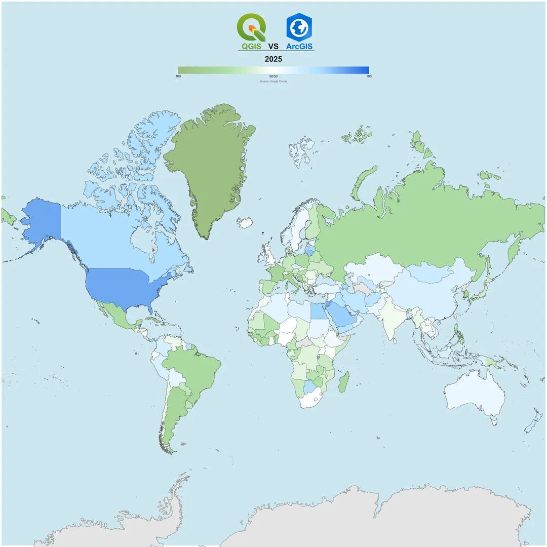QGIS vs. ArcGIS in Google Trends [link]