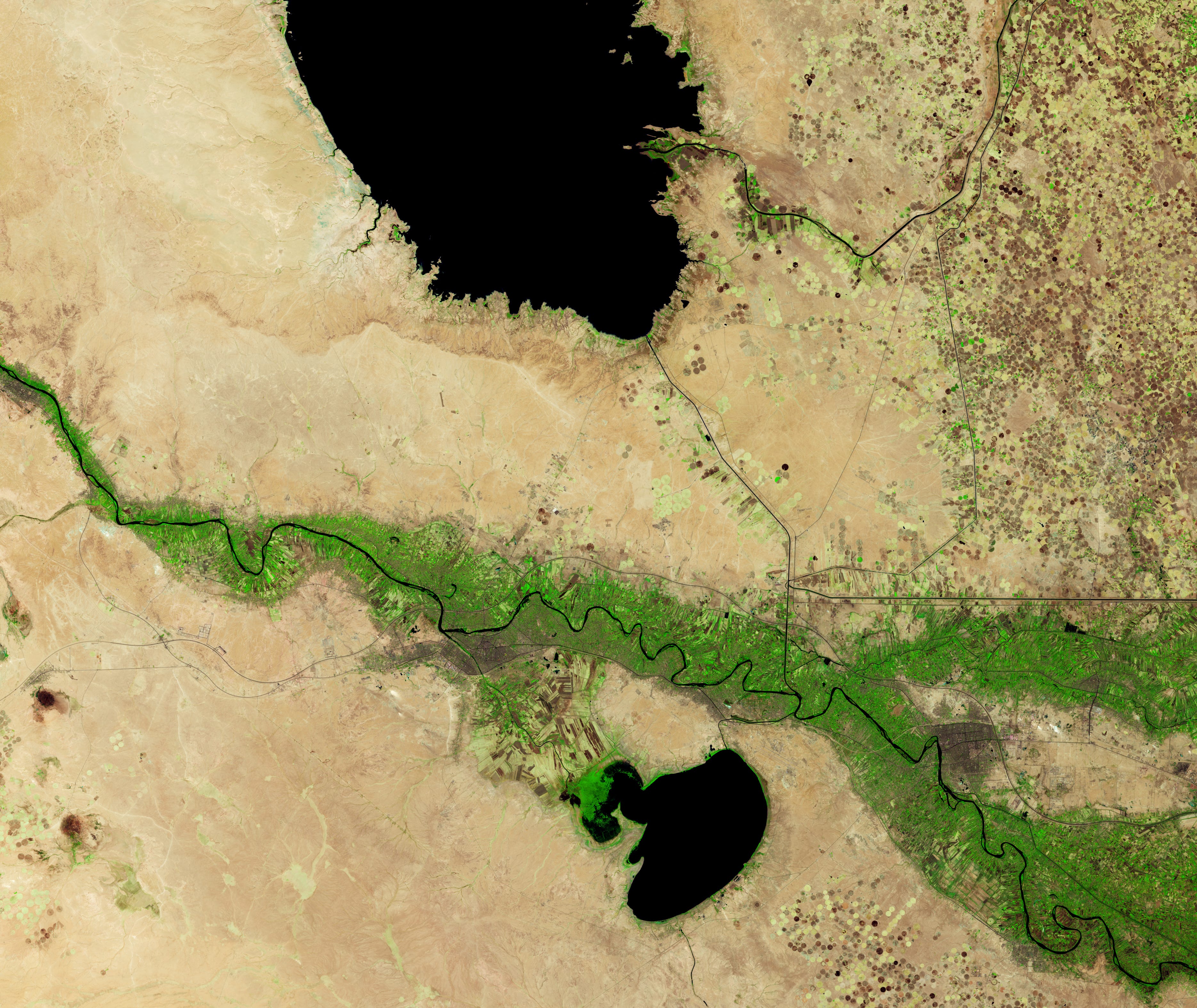 The lake, Iraq’s largest, lies within a broad natural depression between the Tigris and Euphrates rivers, although its water comes only from the Tigris. During periods of excess flow, water managers divert floodwater from the river at the Samarra barrage via a canal and into the reservoir. These inflows usually cause water levels to spike in the spring, when snowmelt in the headwaters of the Tigris in Türkiye and Iran joins with runoff from seasonal rains.