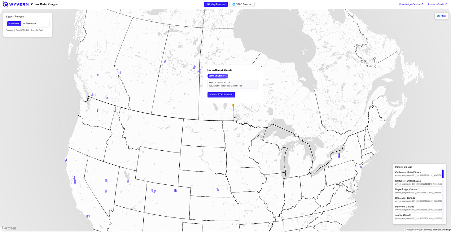 Wyvern launched their Open Data Program back in February 2025 and has been updating a open knowledge centre for working with Wyvern hyperspectral imagery. [link]